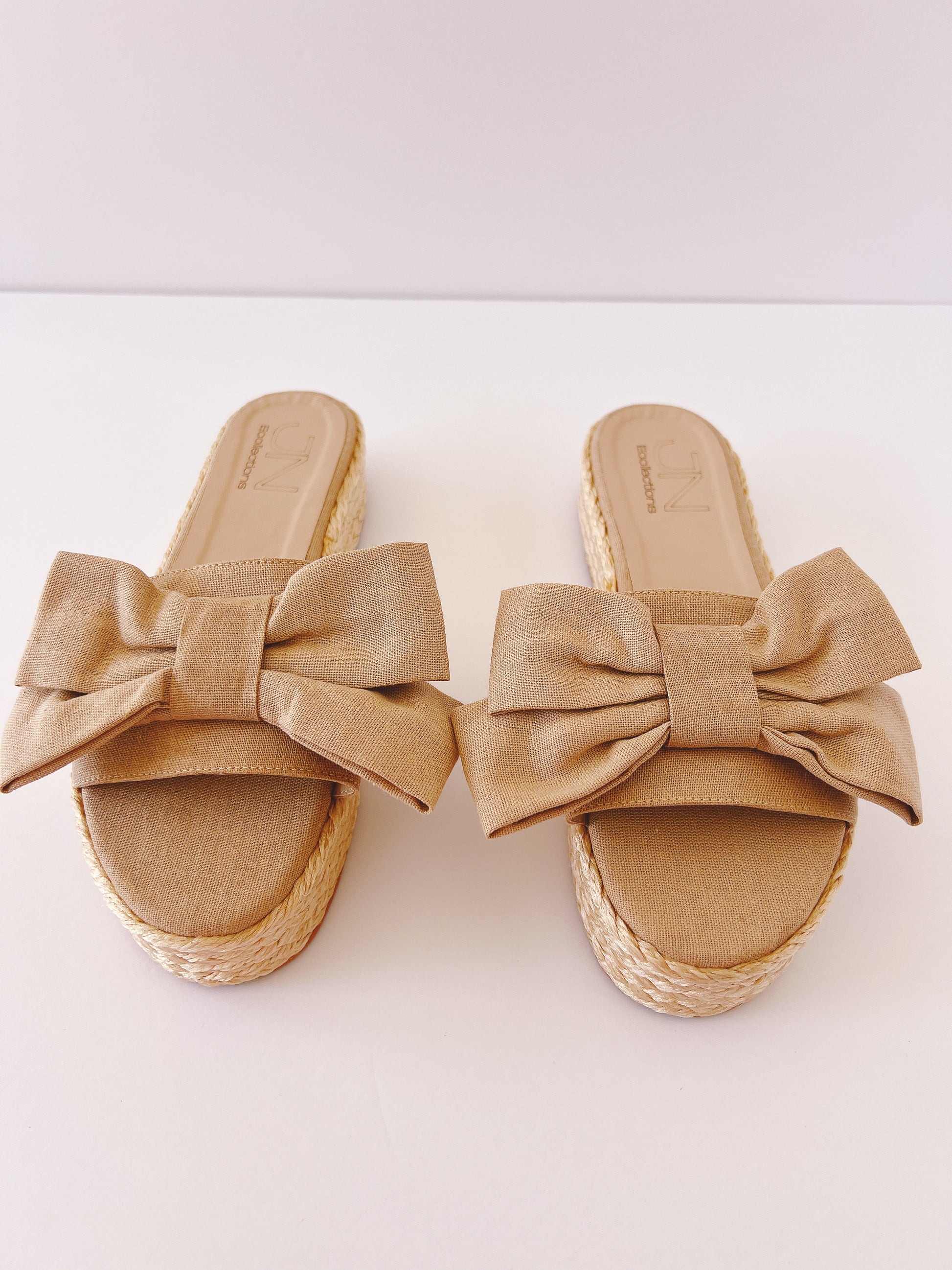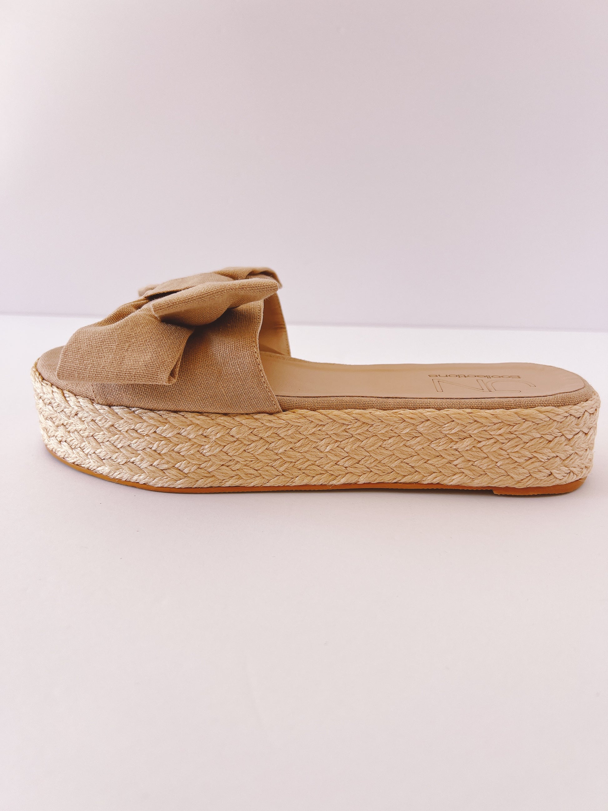 DETALLES: Sandalia con plataforma de yute / cinta de moño / cubierta tela